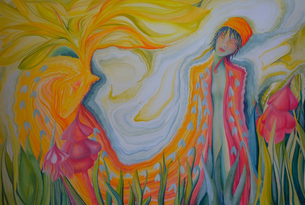 Aquarelle, kreide,